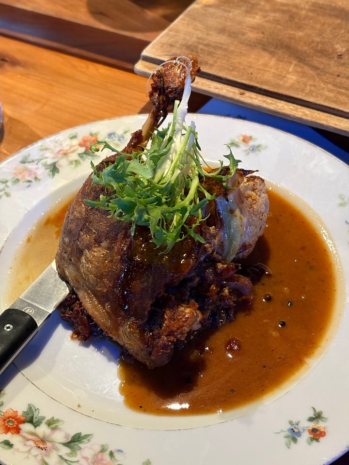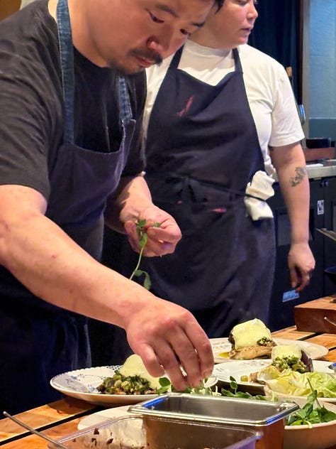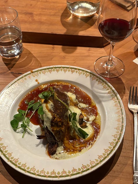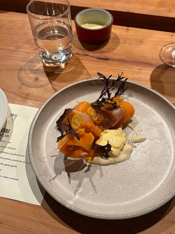 Each dish comes out on its own vintage plate, and the space feels both elevated and completely relaxed. I’ve tried the add-on entrées a few times and while they’re always great, you definitely don’t need them. The fish course is consistently my favorite. Half the fun is the surprise; you don’t know what flavor combinations you’re getting until you sit down. And if you’re a sauce person, this place is for you: every protein is drenched in incredible sauces and cremas, with a hunk of Josie the Baker bread on the side to soak it all up.
