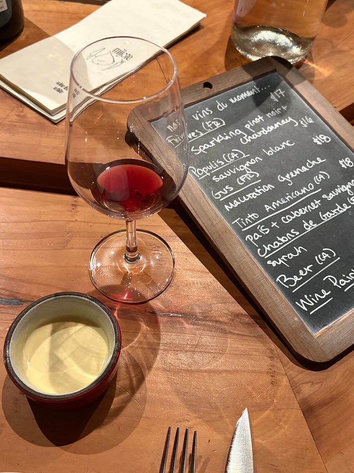 While you don’t have much choice outside of the prix fixe menu (outside of a few optional add-ons) you do have a choice when it comes to wine. It’s definitely not a must to do the pairing, but they have a lovely rotating wine list and the staff is super knowledge about their natural wine selection.